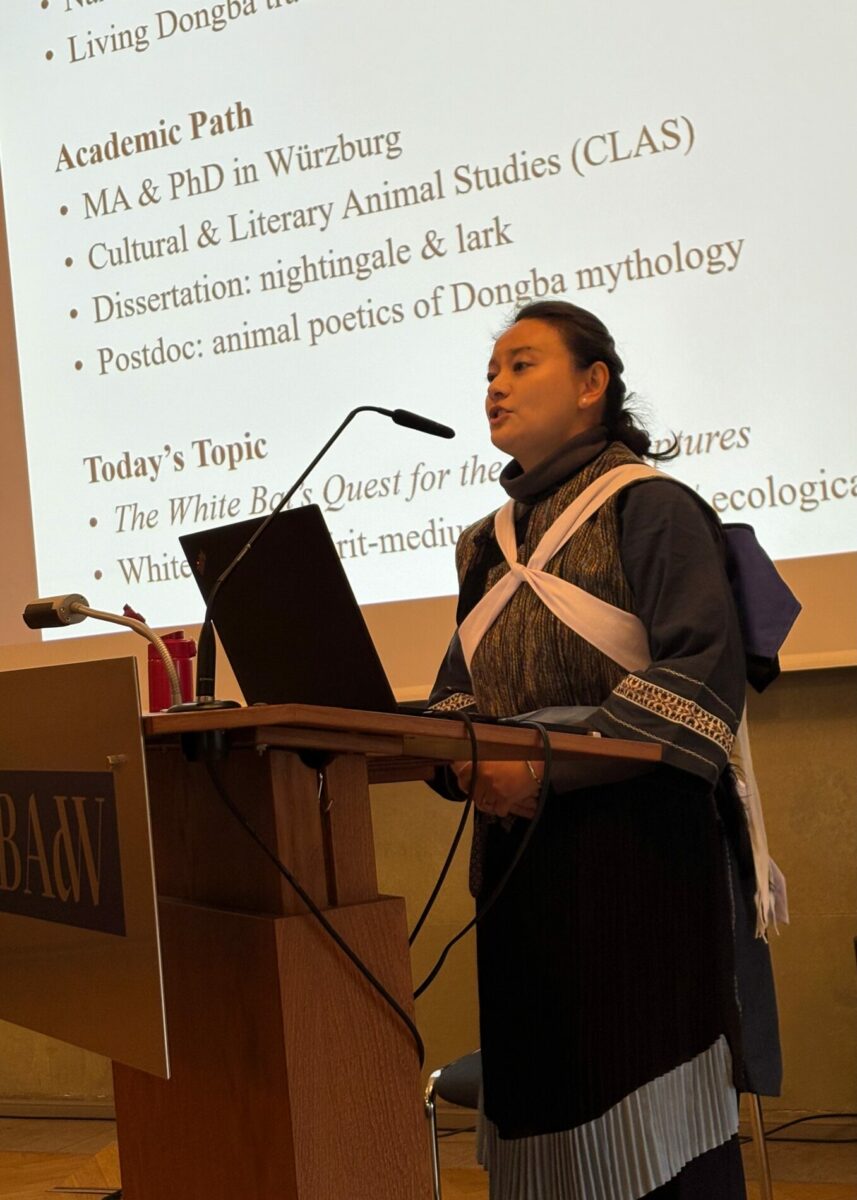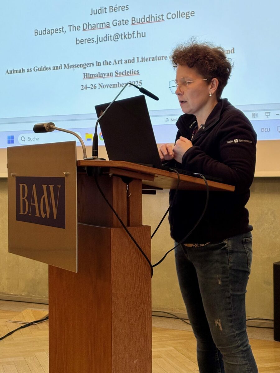This paper explores the function of animal figures in Sakya Pandita’s Legs bshad mdzod (The Treasury of Good Advice), a seminal text of Tibetan moral literature. The work, composed in the 13th century, contains numerous animal allegories that serve as moral guides, each demonstrating key ethical lessons central to both lay and monastic life. Animals such as the fox, monkey, tiger, horse, and others appear frequently in this didactic literature, their behaviour used as an example to reflect human virtues or flaws. These figures are not mere narrative devices, but active agents of moral instruction, warning readers of the consequences of undesirable behaviour. In the context of Central Asian and Himalayan traditions, animals often act as messengers of wisdom, mediators between the human and divine. The Legs bshad mdzod showcases this dynamic through animal characters, which deliver Buddhist ethical teachings in a form that is both accessible and culturally resonant. For example, in one of the verses, Sakya Pandita writes: “The monkey imitates the rituals but does not understand them,” symbolizing the danger of superficial practice without true understanding. These animal motifs are not unique to Tibetan Buddhism, but reflect broader Central Asian and Himalayan literary traditions where animals function as symbols of human traits and behavioural lessons. In this paper, I will examine these motifs in the original Tibetan text, focusing on how they transcend simple allegory to become profound moral tools. This presentation will also show how Sakya Pandita uses these animals to convey complex Buddhist concepts such as karma, impermanence, and the cultivation of virtuous conduct. By analyzing selected verses and their role in the ethical framework of the text, this paper demonstrates how animals in Legs bshad mdzod act as powerful metaphors for human moral and spiritual development, fulfilling the role of both “guides” and “messengers” in the literary and spiritual context of the Himalayas and Central Asia.